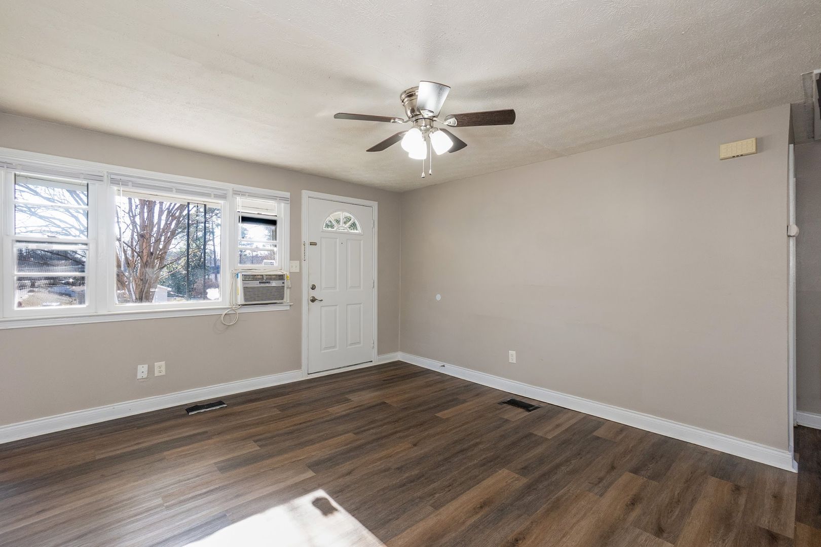 Discover this charming 3-bedroom, 1-bath cottage in downtown Apex! Freshly repainted with brand-new LVP floors throughout, this inviting home offers a bright and airy living area filled with natural light. Each bedroom is comfortably sized and features a ceiling fan for added comfort.