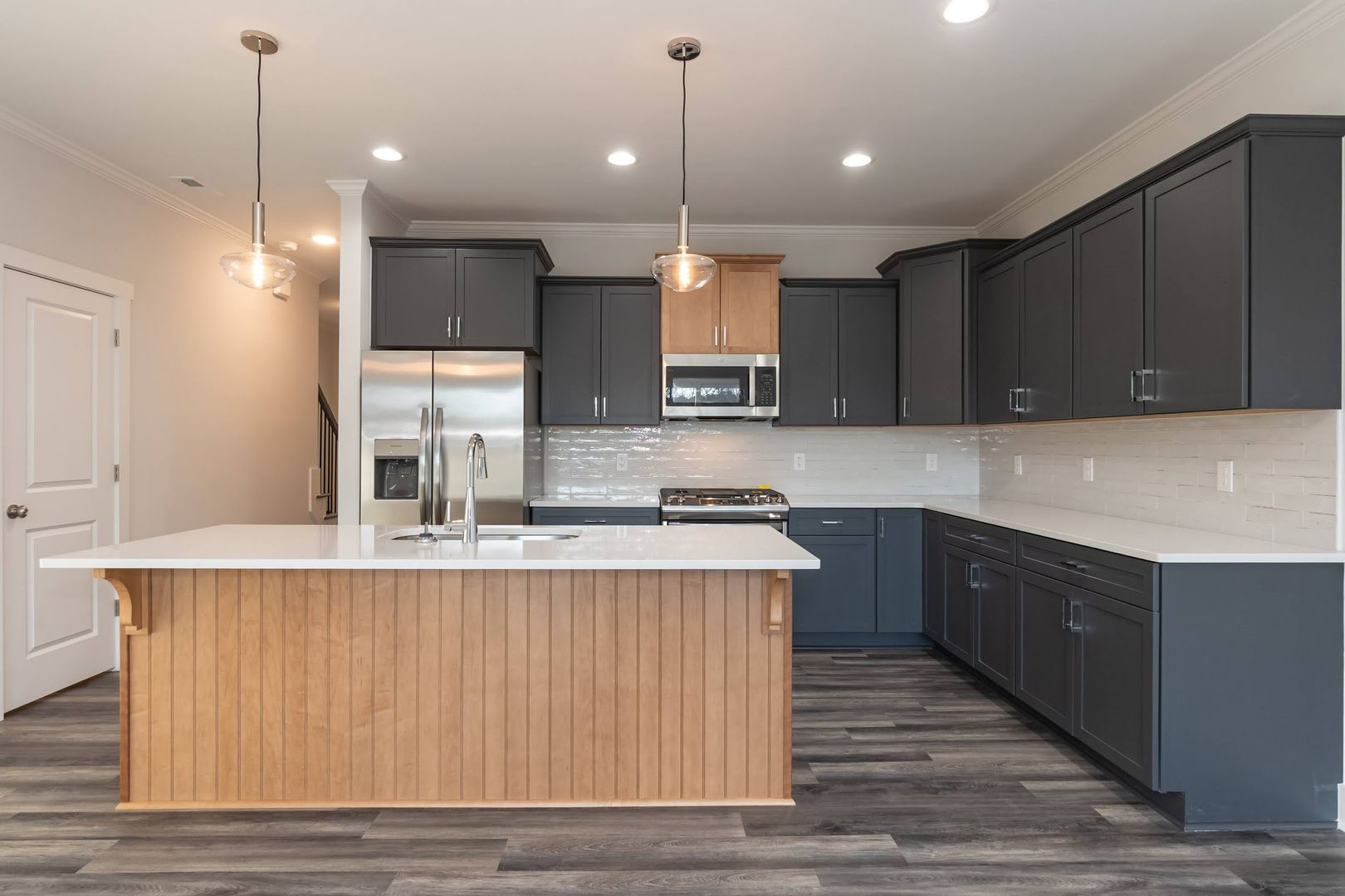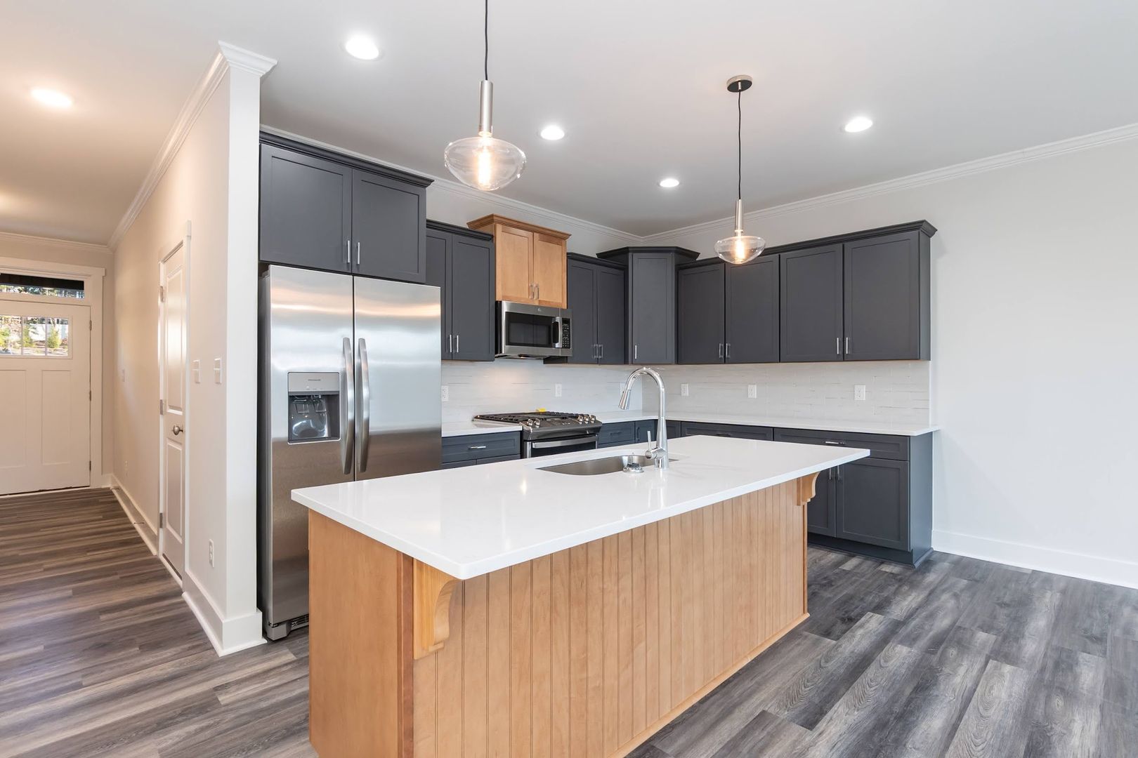 This three bedroom, 2.5 bathroom is move in ready new construction! One car garage and private driveway. LVP flooring and tile throughout. Spacious master bedroom with custom tiled shower and master closet with built ins! Kitchen features modern pendant lighting, subway tile backsplash and stainless steel appliances. Washer and dryer included!! TONS of natural light. Landscaping included with HOA. No pets. Text 361-356-3293 for info!
